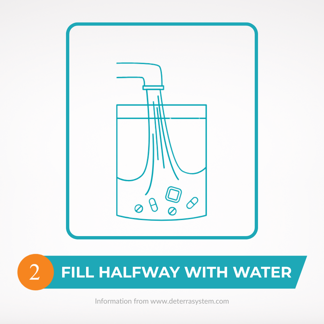 Open pouch and place unused medications inside.